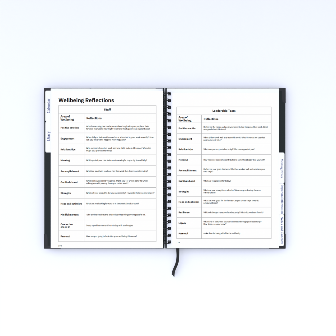 This isn't a generic diary. It's built by a school leader, for school leaders — it follows the school calendar and is designed around real school actions, not corporate meetings or vague to-do lists.